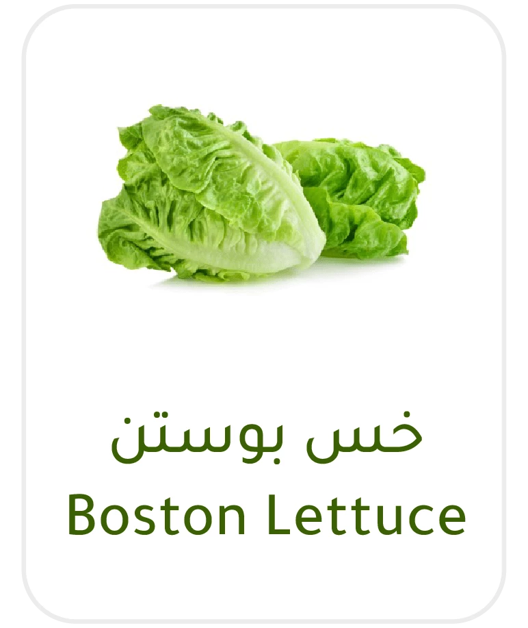 خس بوستن طازج من أجود الأنواع، يتميز بقوامه الطري والمنعش. مثالي للسلطات الفندقية أو كطبق جانبي. يضيف قواماً طرياً ونكهة خفيفة. يحتوي على نسبة عالية من الماء والفيتامينات. مثالي للمطاعم التي تقدم سلطات طازجة وطرية.